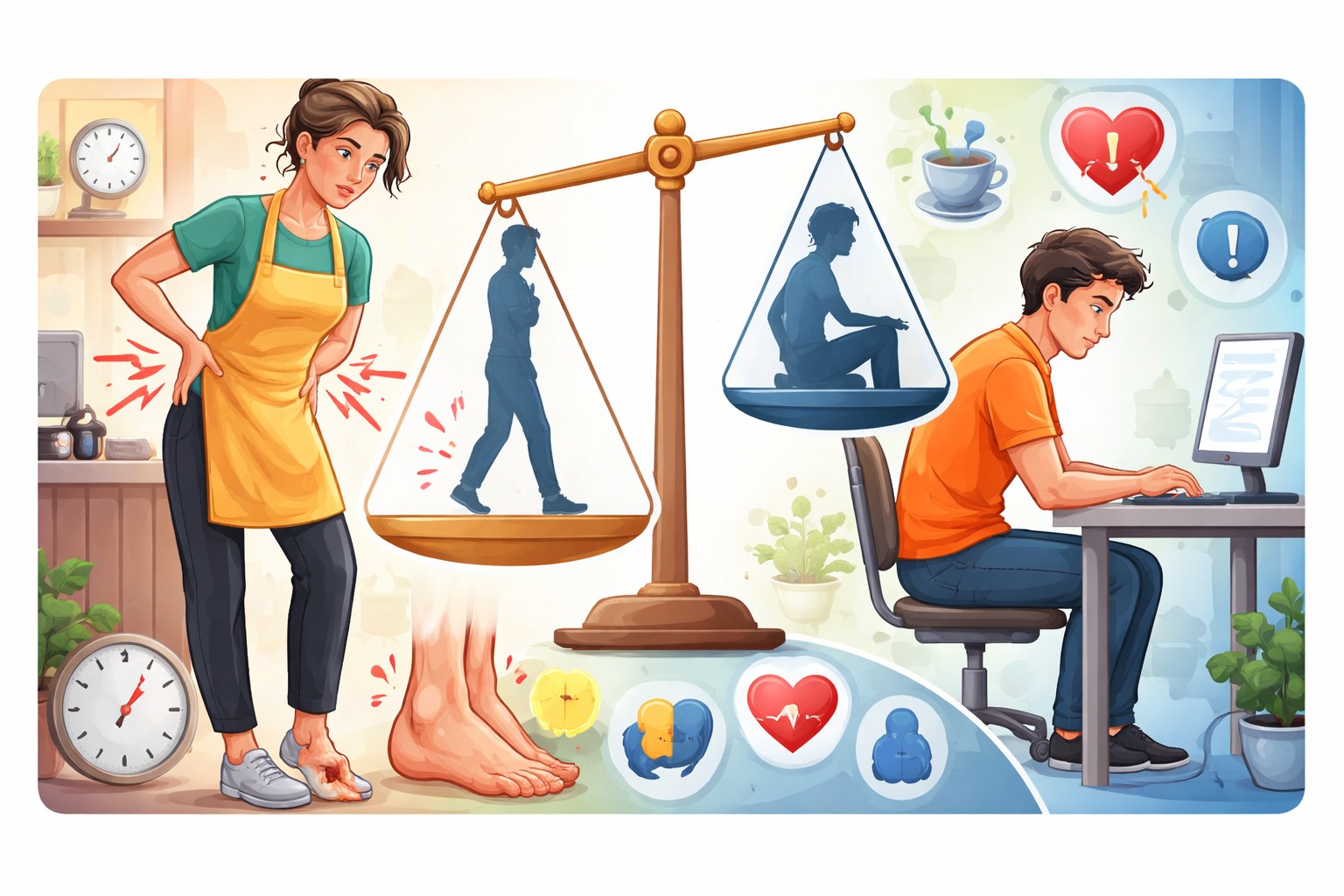 Varför det kan vara farligare att arbeta på fötterna under långa perioder än att ha en stillasittande livsstil